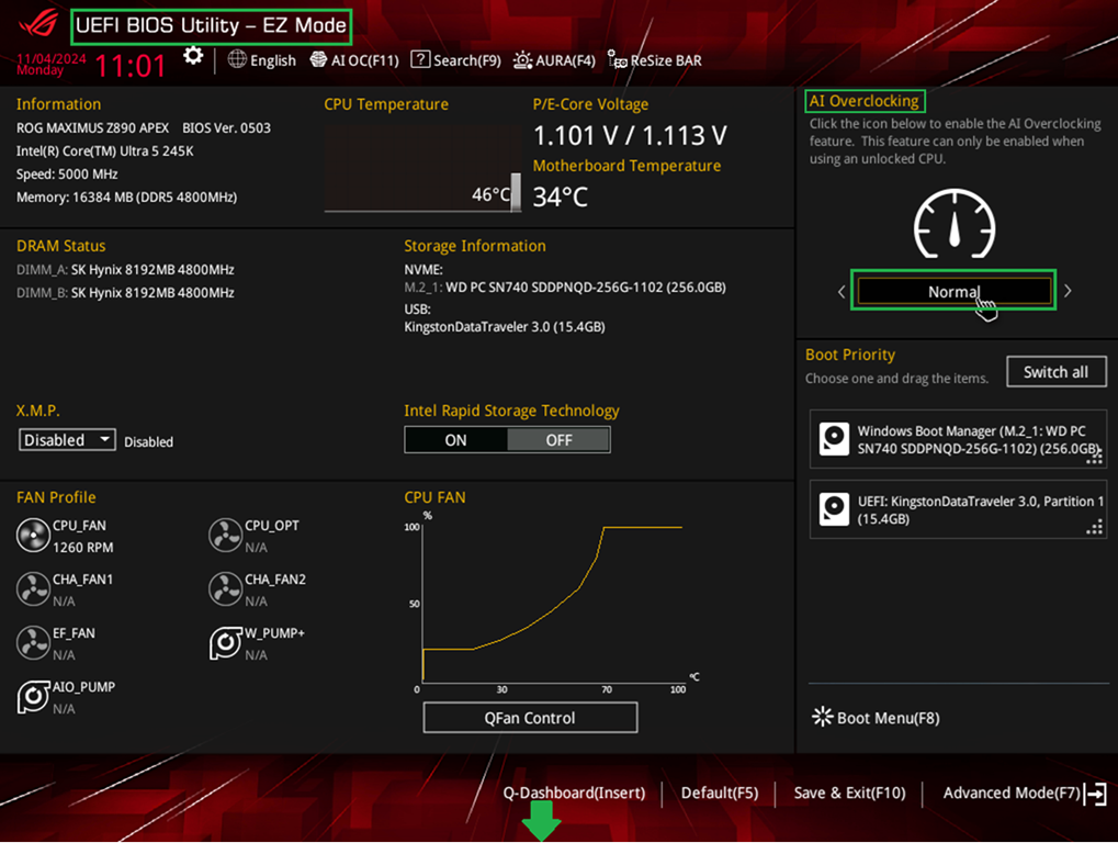 AI Overclock pada gaming desktop dengan Intel® Core™ processor bekerja secara cerdas. Sistem ini memantau beban kerja secara real-time dan menyesuaikan clock speed secara otomatis.